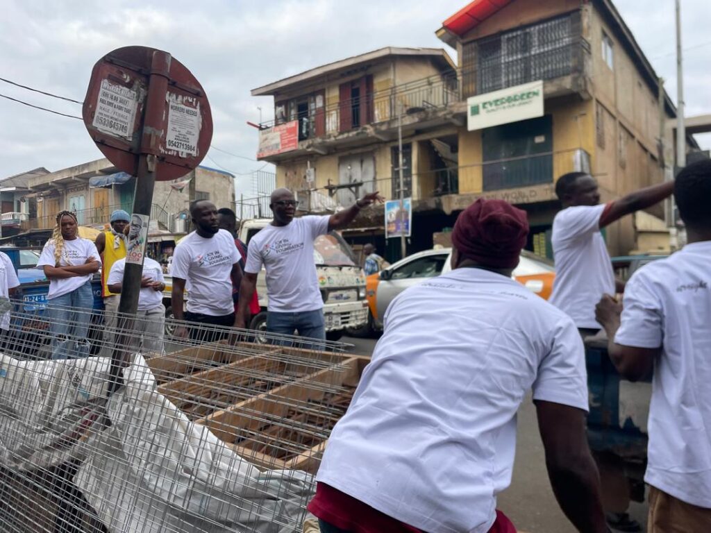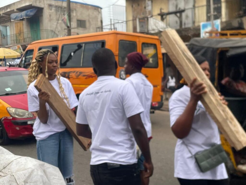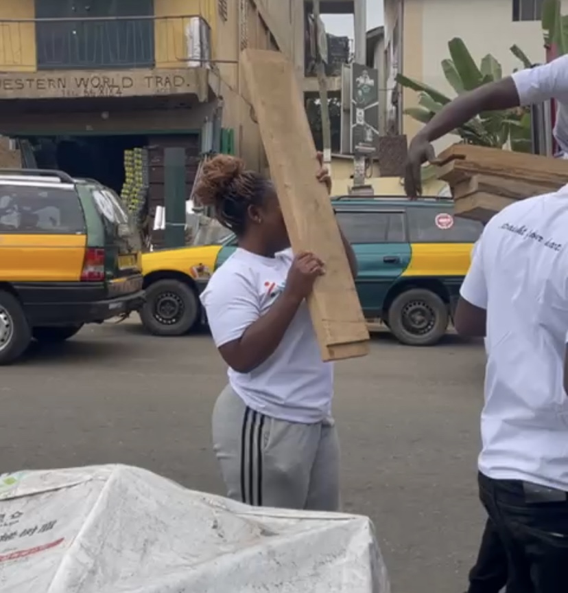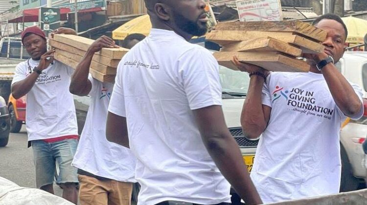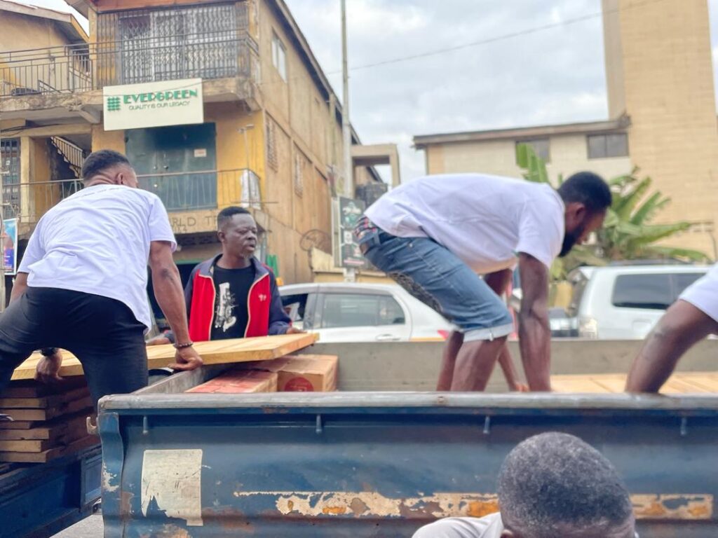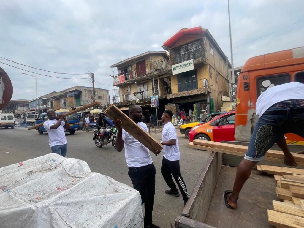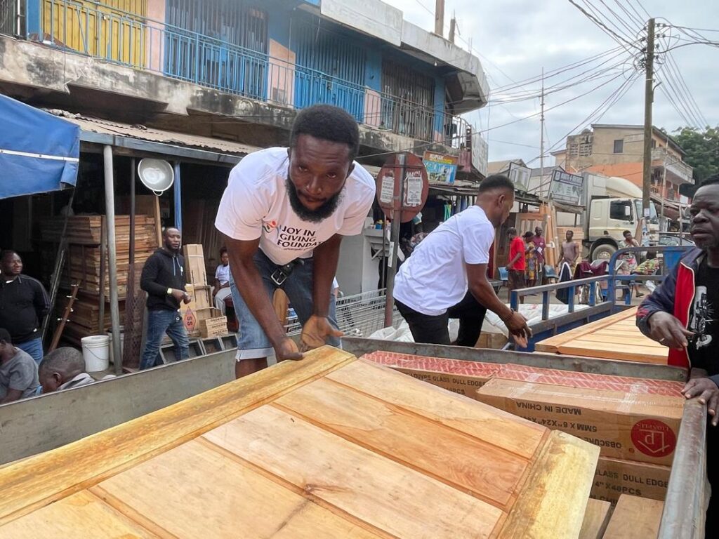 TeamJoy came together at Timber Market in Accra—carrying doors, windows, and more for our Safe Home project, “The Mission.”