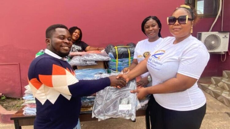 The owner of Exclusive Towel Boutique, Miss Harriet Ashong, donated fifty assorted bath towels to help promote hygiene at the orphanage.